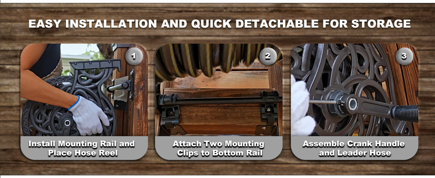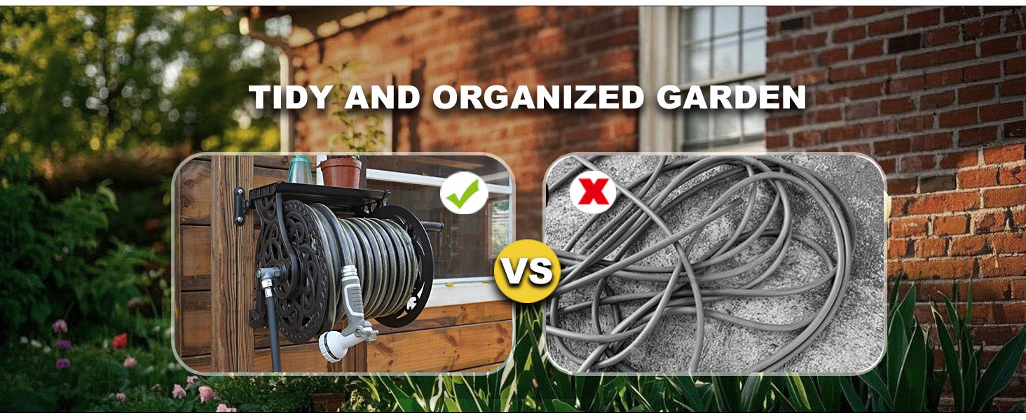 Metal Decorative Garden Hose Reel, Holds 135 ft x 5/8" Hose Capacity