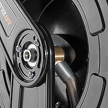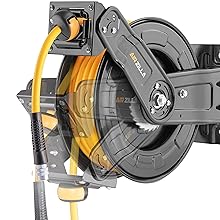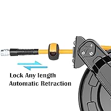 ● Lock Freely and Easy Effortless Automatic Rewind Operation, locked anywhere by metal latching racthet at clicking sound. A short tug unlock to let hose retract all the way back smoothly and nicely.