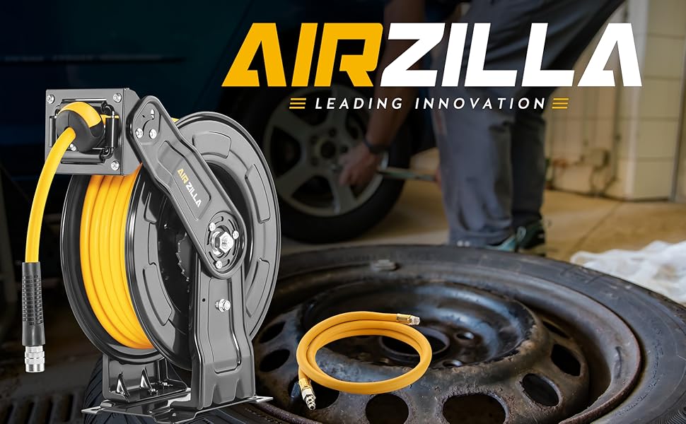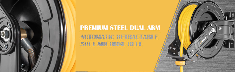 Premium Steel Retractable Air Hose Reel With Dual Arm, Hybrid Polymer Hose