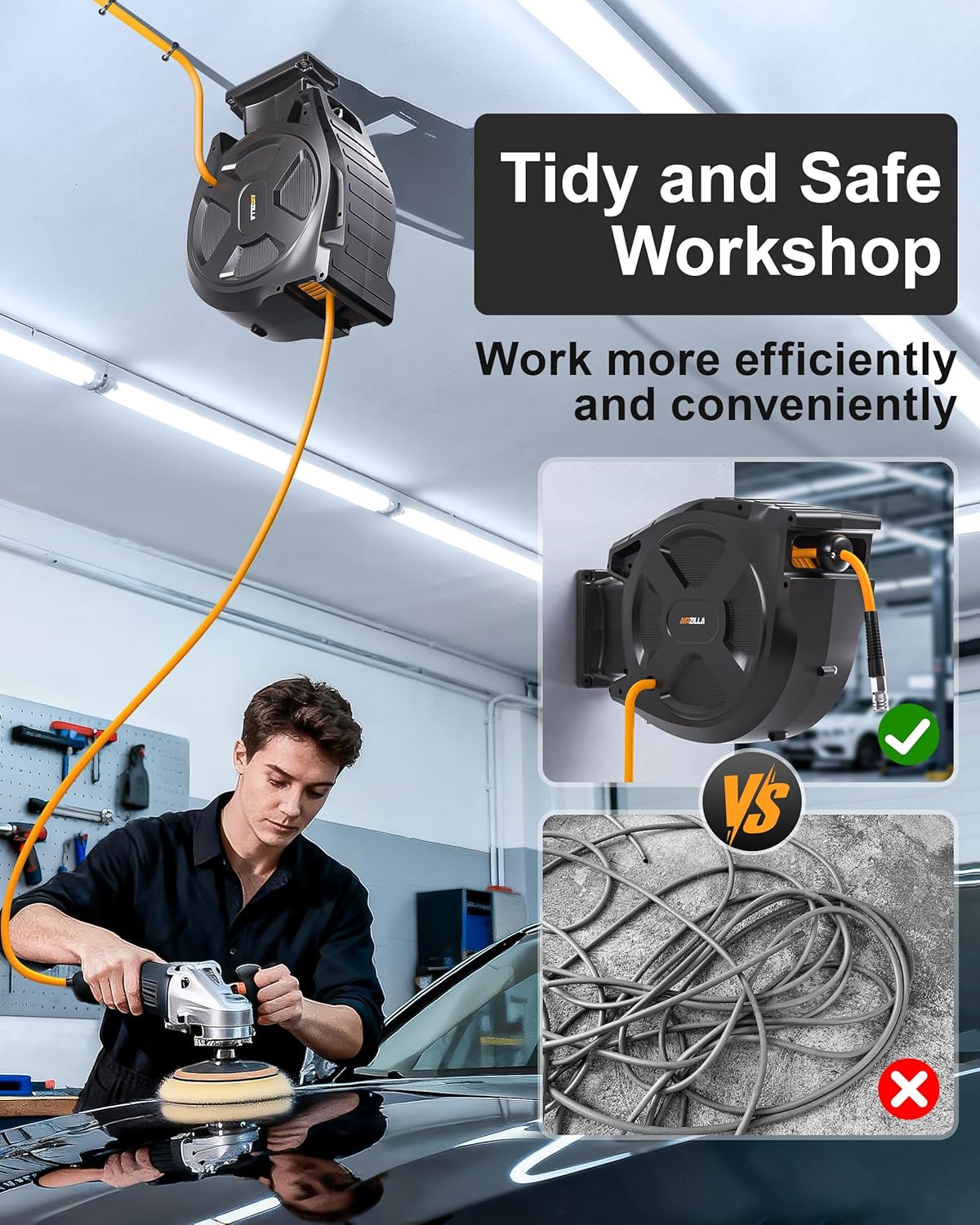 Retractable Air Hose Reel, 3/8" x 80Ft Flex Hybrid Air Hose