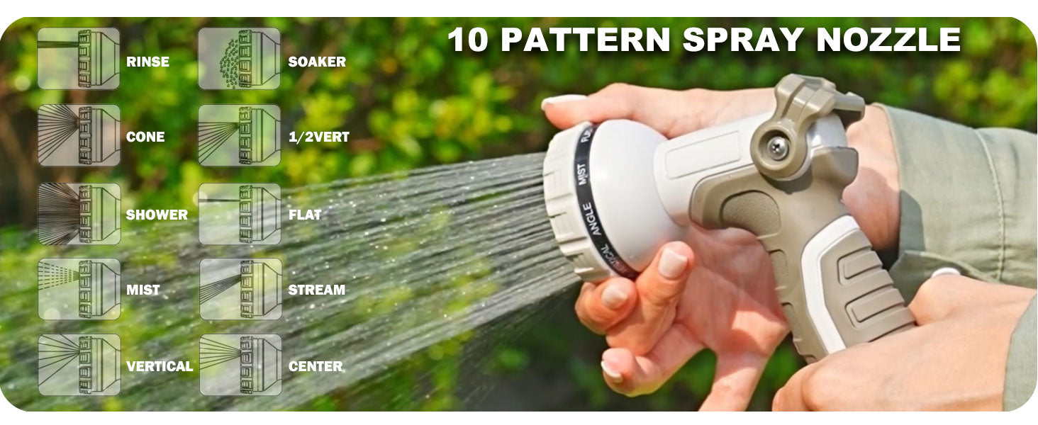 ● 10 Pattern Multi Function Sprayer Nozzle with Ergonomic Comfy Grip, lead free fitting material
