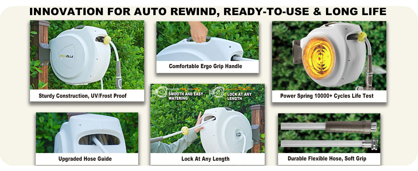 ● Automatic Rewind, Smooth Effortless Retraction, exra long life exceeds 10000 Cycles