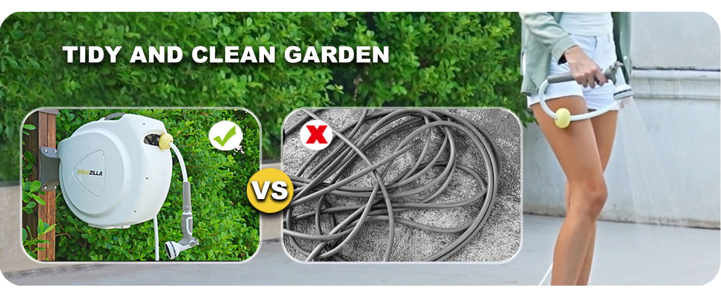● Built-in Premium 5/8" Garden Hose, upgraded 300PSI, no leak, tangle free, kink resistant
